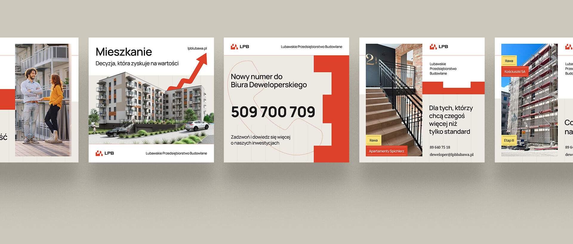 Współpracę rozpoczęliśmy od kompleksowego rebrandingu i uporządkowania komunikacji. Ponieważ dotychczasowa identyfikacja nie oddawała pełnego potencjału firmy, celem stało się stworzenie spójnej i profesjonalnej tożsamości oraz wdrożenie narzędzi wspierających sprzedaż. Projekt objął stałe wsparcie strategiczne, social media i kampanie reklamowe, które pozwoliły na skuteczne pozycjonowanie inwestycji i konsekwentne budowanie autentycznego wizerunku.
